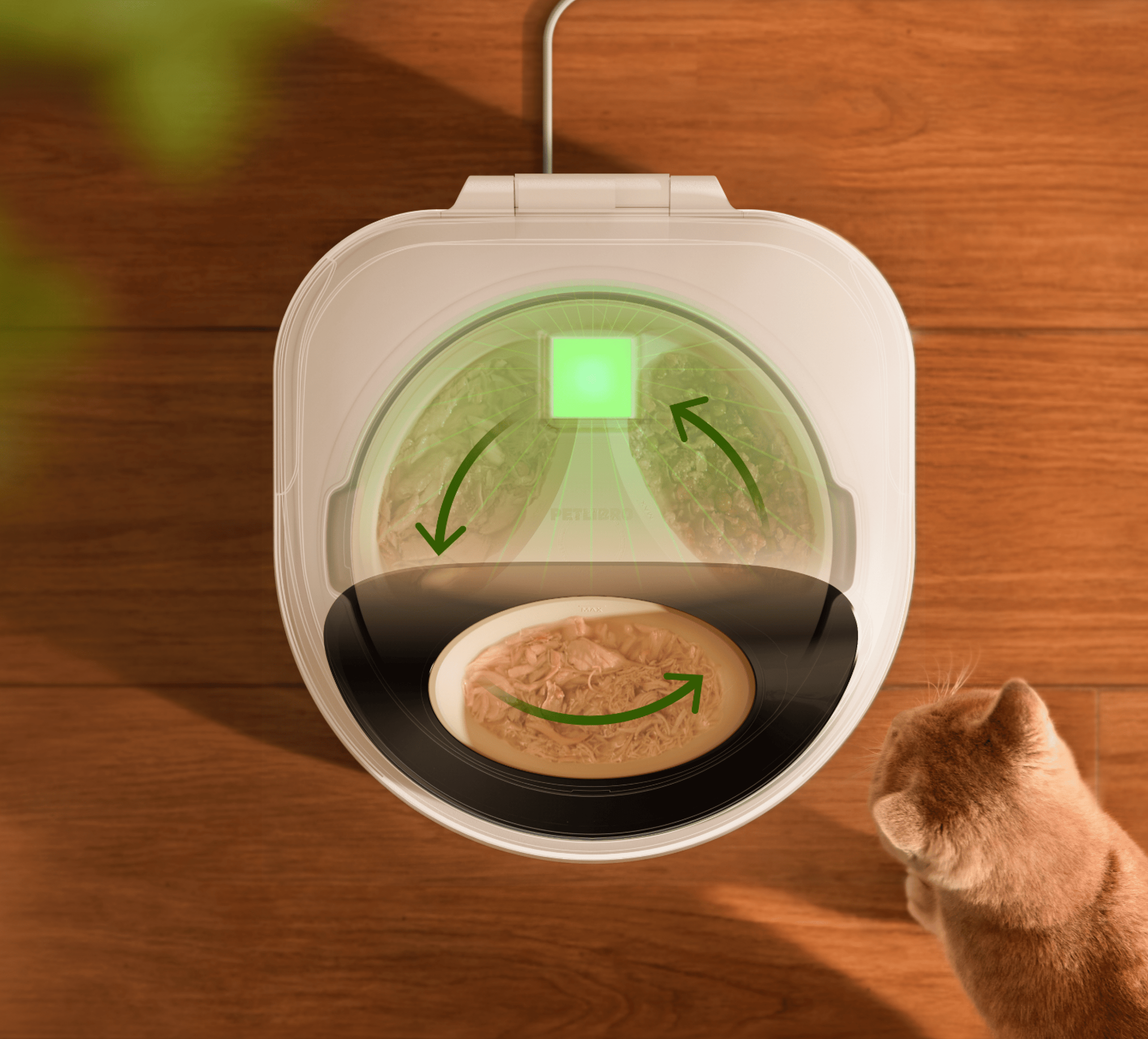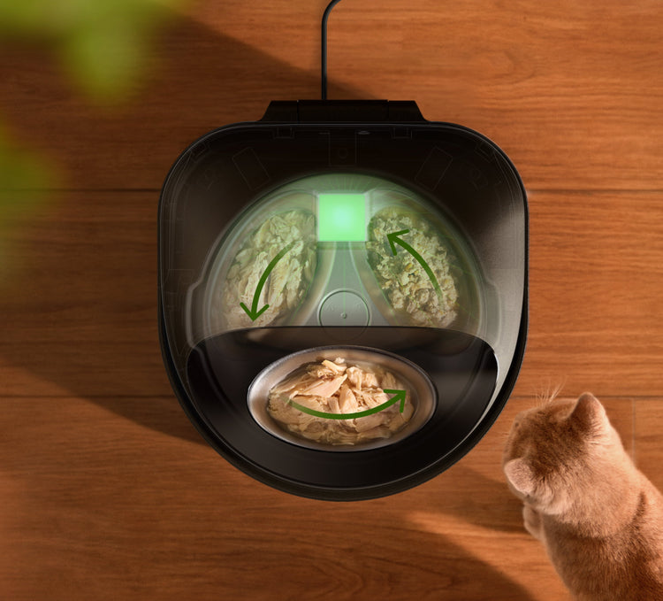 Meals are gently chilled to preserve flavor and freshness with advanced thermoelectric cooling - no ice packs needed.* Just before serving, cooling is paused for some time so pets can enjoy meals at an ideal temperature.