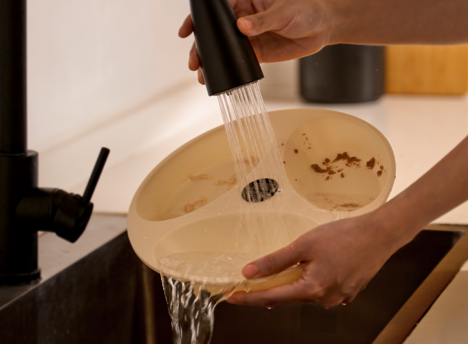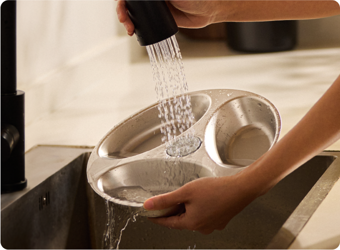 A: The feeding bowl is dishwasher-safe (up to 212℉/100℃) or can be hand-washed with water for easy upkeep.