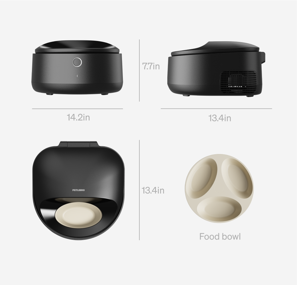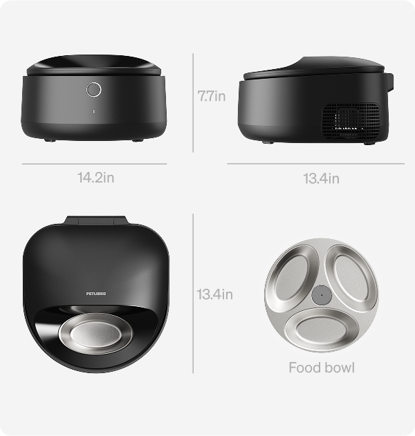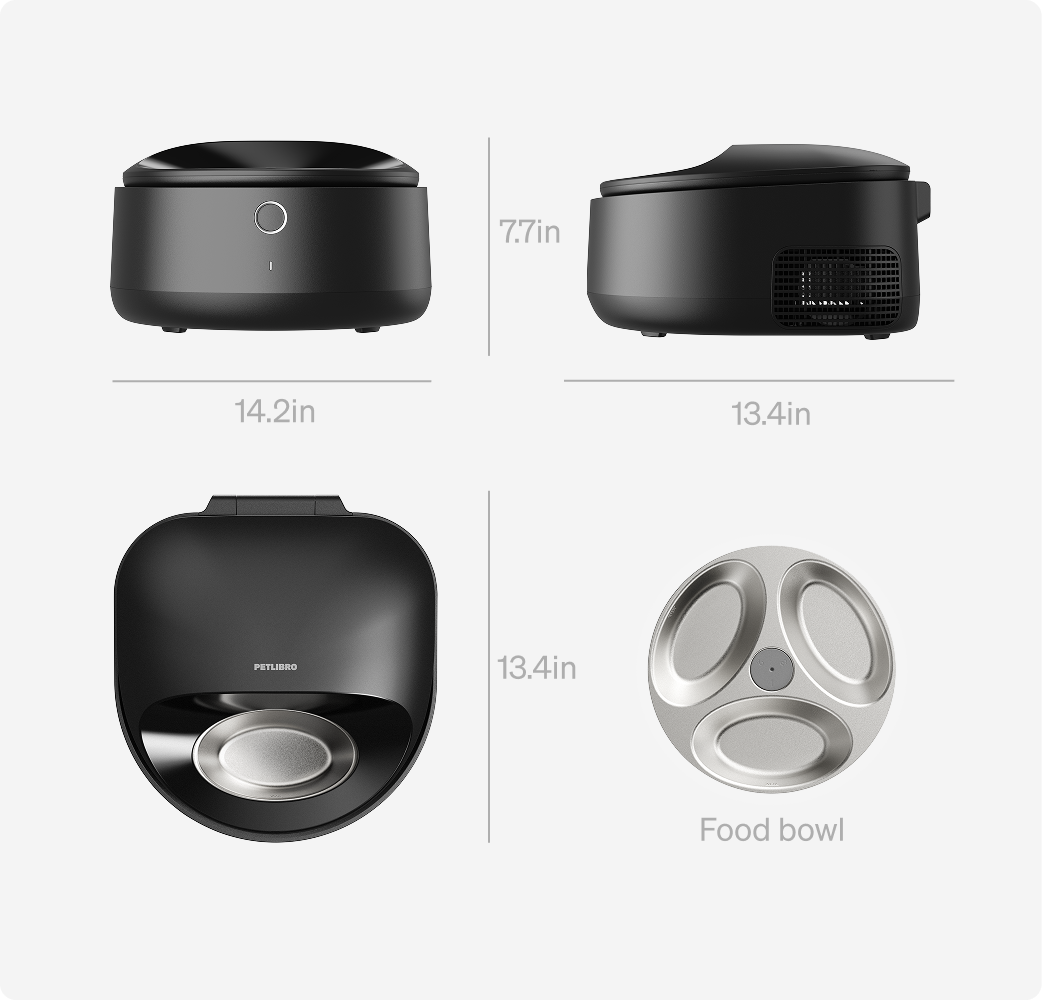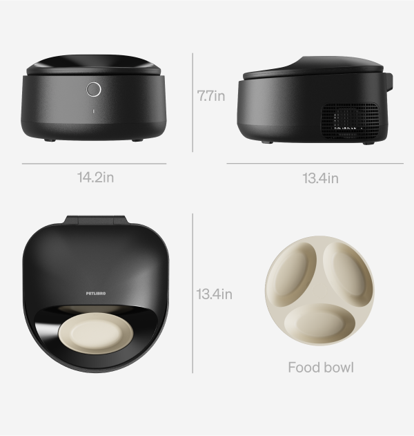Engineered from the ground up for wet food, featuring a 3-compartment bowl and precise temperature management. Product dimensions: 34L x 35.6W x 19H cm. Note: Due to the heat dissipation module, this unit is slightly taller than ordinary ice-pack feeders—please verify dimensions before purchasing.